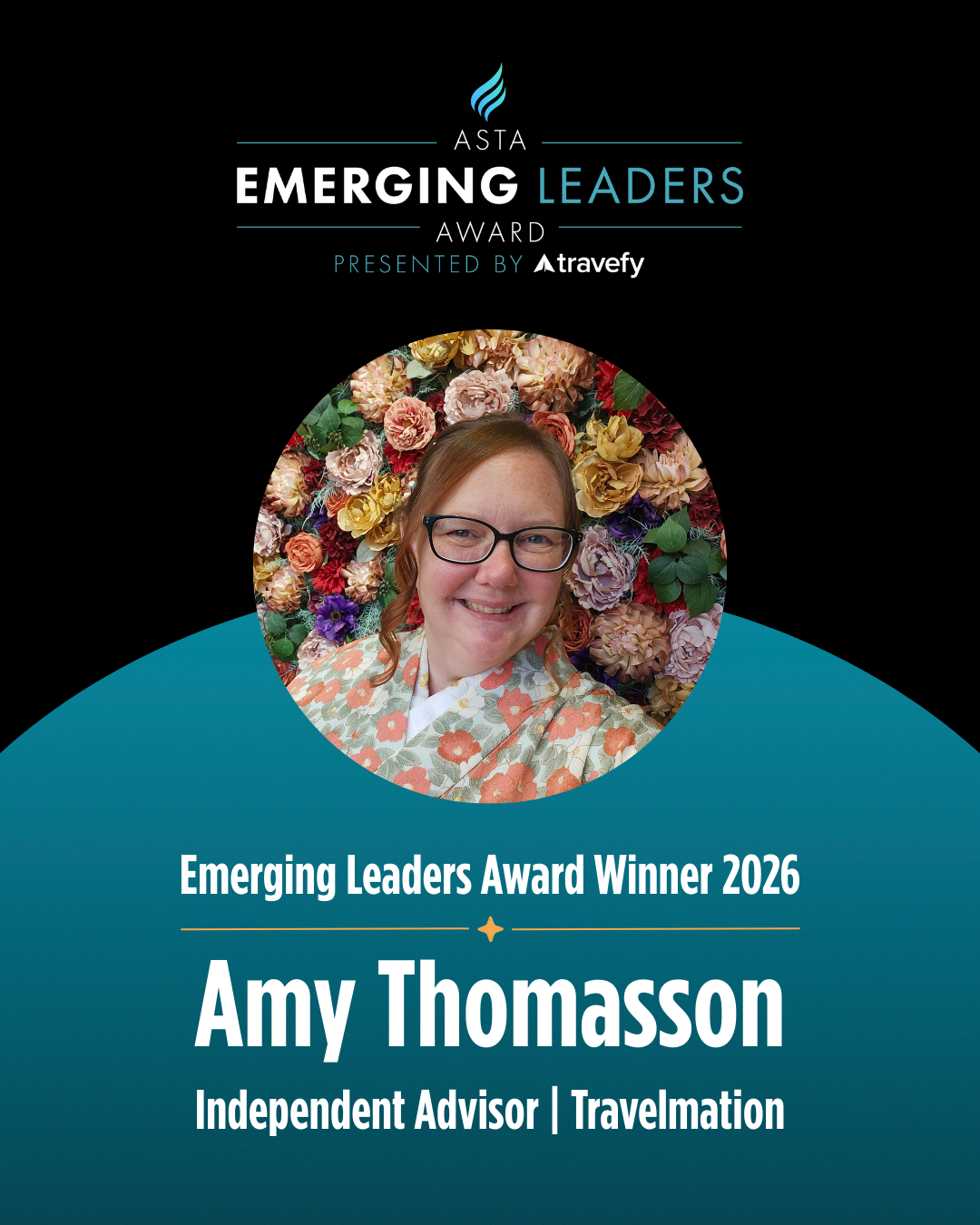 The ASTA Emerging Leaders Award recognizes travel advisors who are advancing the profession through expertise, innovation, and influence, redefining how travel is planned, sold, and supported at a professional level.